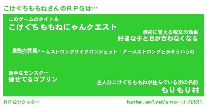| 伝説のあだ名 | 『伝説の竜騎士こけぐちももね』 |