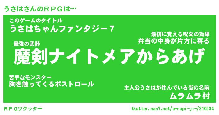 | ファンタジー風あだ名 | 『ウサフェル』『エターナルウサハー』 |