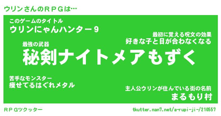 | 男性向けラノベタイトル風あだ名 | 『ウリンの憂鬱』 |