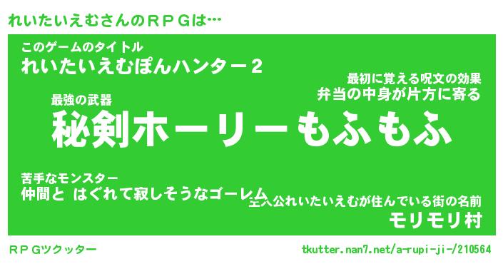 | 男性向けラノベタイトル風あだ名 | 『れいたいえむの憂鬱』 |