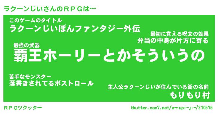 | 胡散臭い通販商品みたいなあだ名 | 『億万長者になれる水晶球…その名も「ラクーンじい」』 |