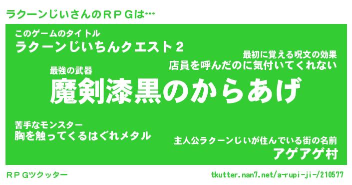 | 男性向けラノベタイトル風あだ名 | 『ラクーンじいの憂鬱』 |
