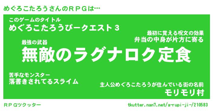 | 男性向けラノベタイトル風あだ名 | 『メグロコタロウアートオンライン』 |