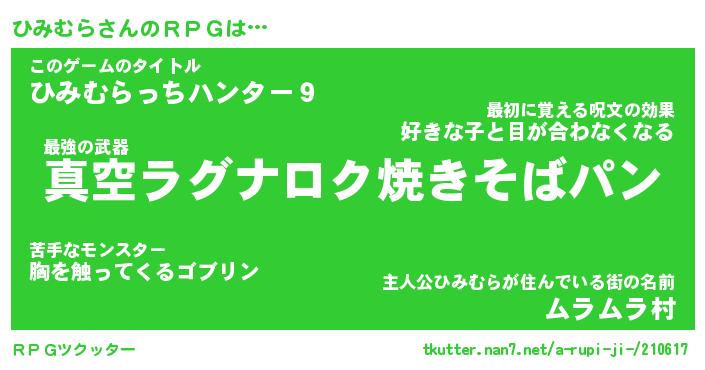 | 男性向けラノベタイトル風あだ名 | 『ヒミムラアートオンライン』 |