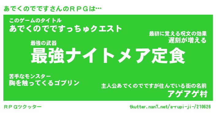 | 男性向けラノベタイトル風あだ名 | 『アデクノデデスアートオンライン』 |
