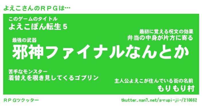 | 胡散臭い通販商品みたいなあだ名 | 『億万長者になれる水晶球…その名も「よえこ」』 |