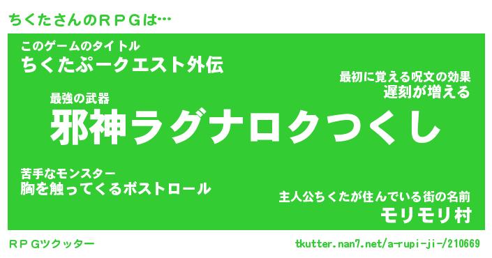 | 伝説のあだ名 | 『封印されし竜騎士ちくた』 |