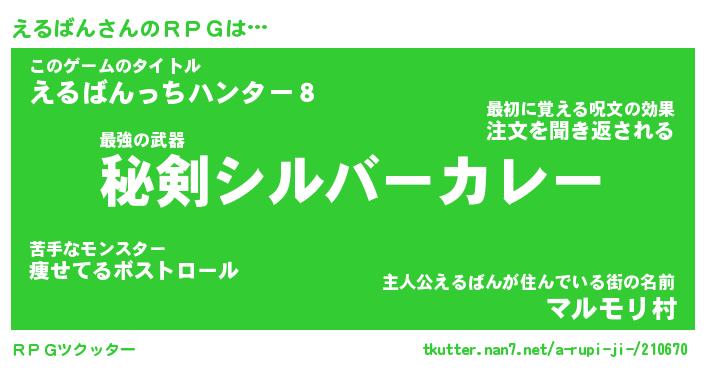 | 男性向けラノベタイトル風あだ名 | 『えるばんの憂鬱』 |