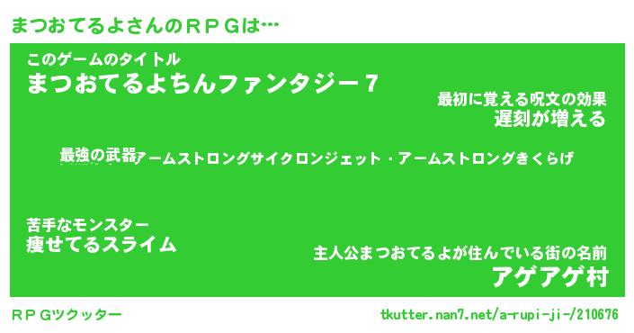 | 女子向けラノベタイトル風あだ名 | 『まつおてるよ姫と円卓の騎士』 |