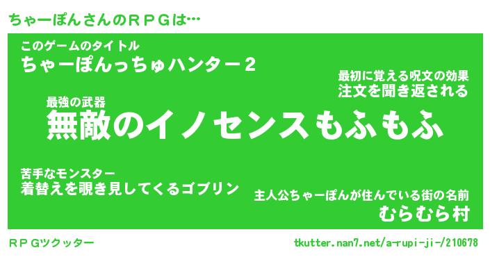 | ヒーロー風カッコイイあだ名 | 『スーパーチャーポン』『天弓騎士チャ』 |