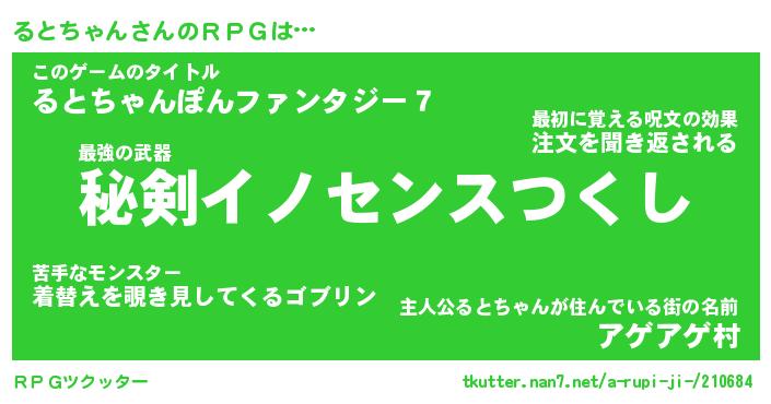 | ファンタジー風あだ名 | 『ルトフェル』『エターナルルトチャンー』 |