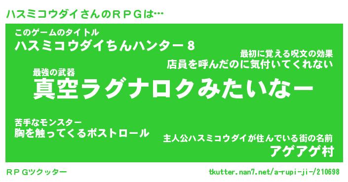 | 伝説のあだ名 | 『封印されし竜騎士ハスミコウダイ』 |
