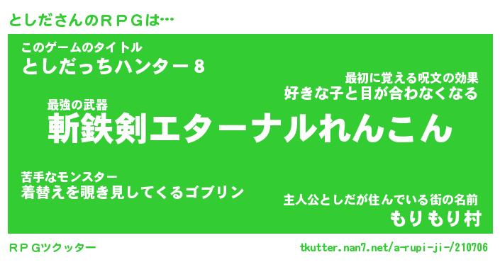 | 男性向けラノベタイトル風あだ名 | 『としだの憂鬱』 |