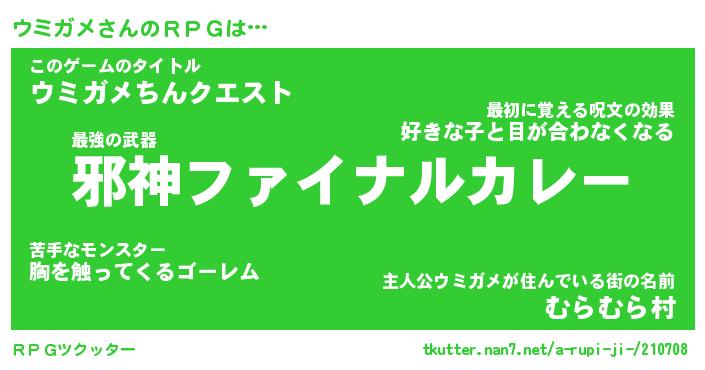 | 男性向けラノベタイトル風あだ名 | 『ウミガメアートオンライン』 |