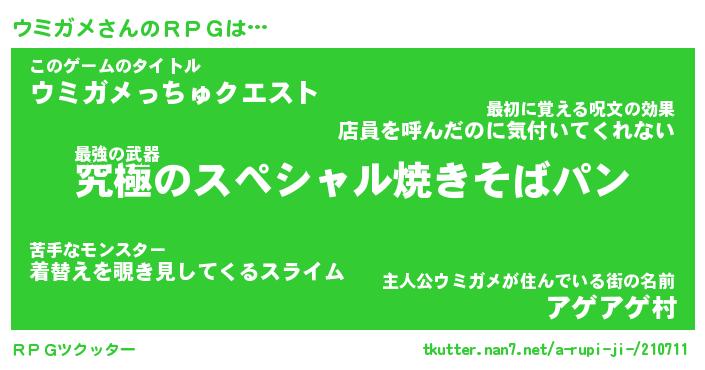 | 男性向けラノベタイトル風あだ名 | 『ウミガメアートオンライン』 |