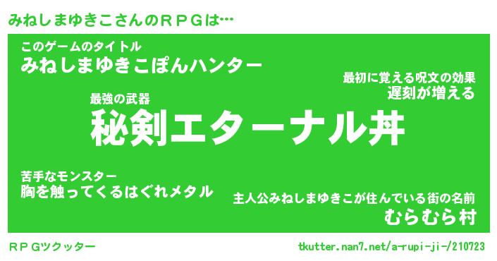 | 男性向けラノベタイトル風あだ名 | 『みねしまゆきこの憂鬱』 |