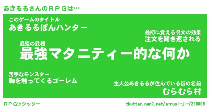| 男性向けラノベタイトル風あだ名 | 『アキルルアートオンライン』 |