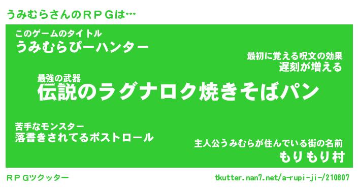 | 男性向けラノベタイトル風あだ名 | 『うみむらの憂鬱』 |