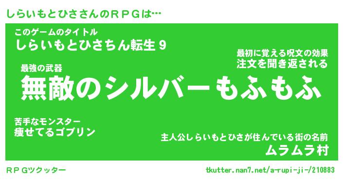 | 伝説のあだ名 | 『封印されし傭兵しらいもとひさ』 |