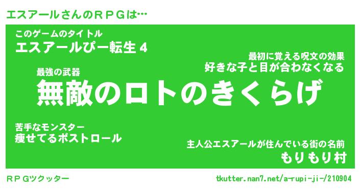| 男性向けラノベタイトル風あだ名 | 『エスアールアートオンライン』 |
