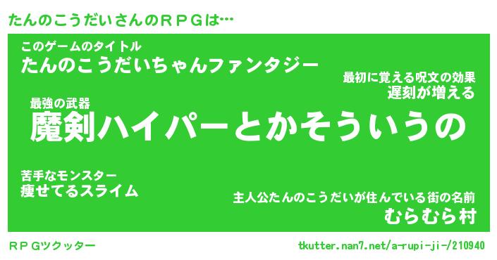 | 男性向けラノベタイトル風あだ名 | 『たんのこうだいの憂鬱』 |