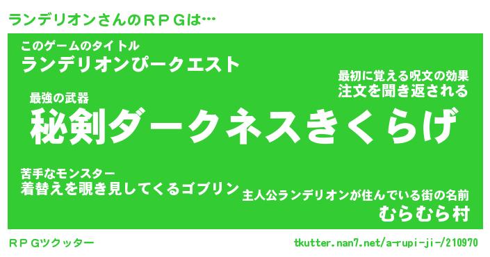 | 男性向けラノベタイトル風あだ名 | 『ランデリオンの憂鬱』 |