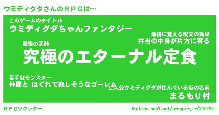 | 料理風あだ名 | 『節約★ウミディグダと油揚げの玉子丼』 |
