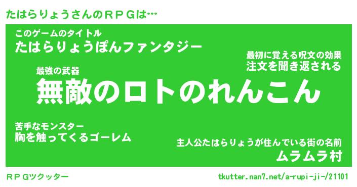| 料理風あだ名 | 『節約★たはらりょうと油揚げの玉子丼』 |