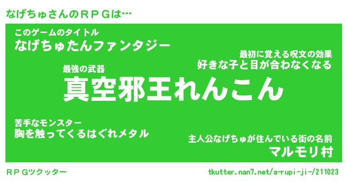 | 胡散臭い通販商品みたいなあだ名 | 『億万長者になれる水晶球…その名も「なげちゅ」』 |