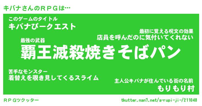 | 男性向けラノベタイトル風あだ名 | 『キバナアートオンライン』 |