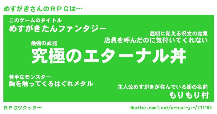 | 料理風あだ名 | 『節約★めすがきと油揚げの玉子丼』 |