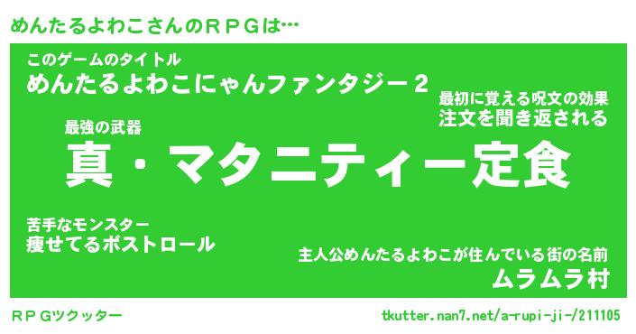| 男性向けラノベタイトル風あだ名 | 『メンタルヨワコアートオンライン』 |