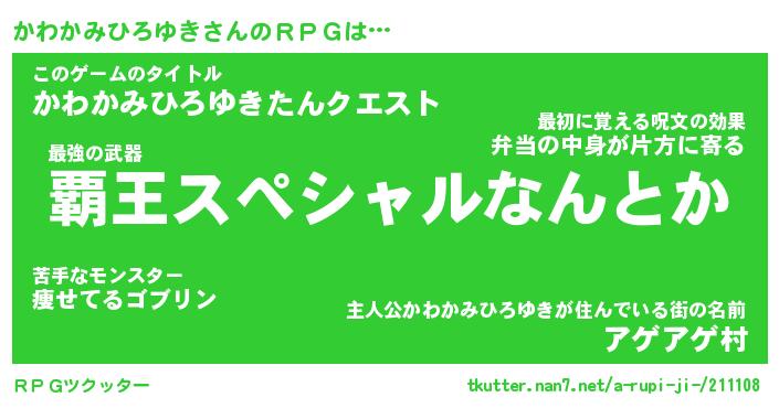 | 男性向けラノベタイトル風あだ名 | 『カワカミヒロユキアートオンライン』 |