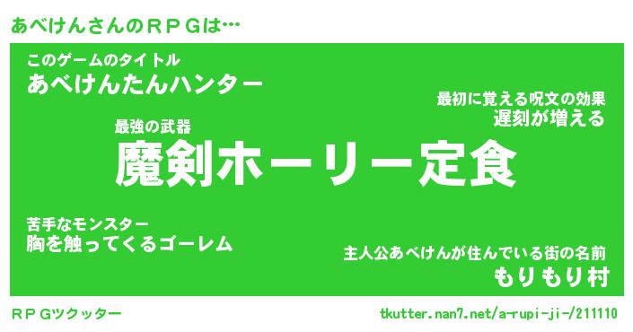 | 男性向けラノベタイトル風あだ名 | 『あべけんの憂鬱』 |