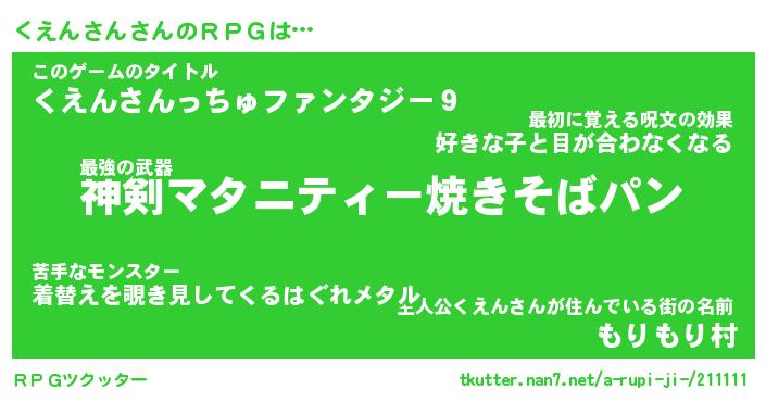 | ファンタジー風あだ名 | 『クエフェル』『エターナルクエンサンー』 |