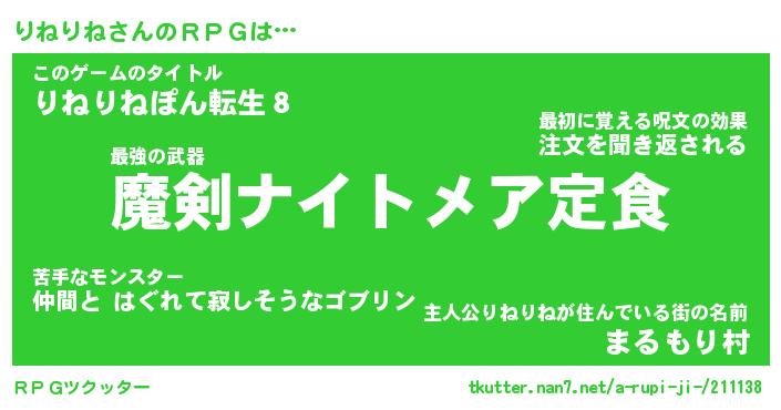 | 男性向けラノベタイトル風あだ名 | 『りねりねの憂鬱』 |