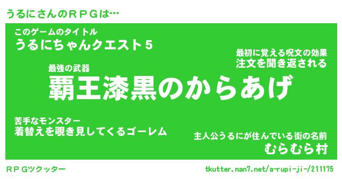 | 伝説のあだ名 | 『封印されしスナイパーうるに』 |