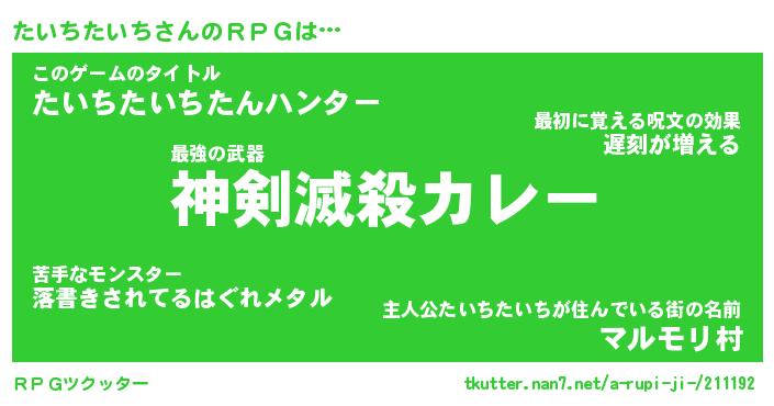 | 男性向けラノベタイトル風あだ名 | 『たいちたいちの憂鬱』 |