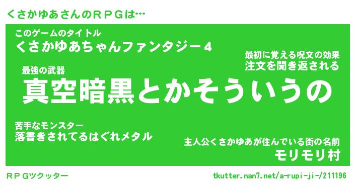 | 伝説のあだ名 | 『封印されし傭兵くさかゆあ』 |