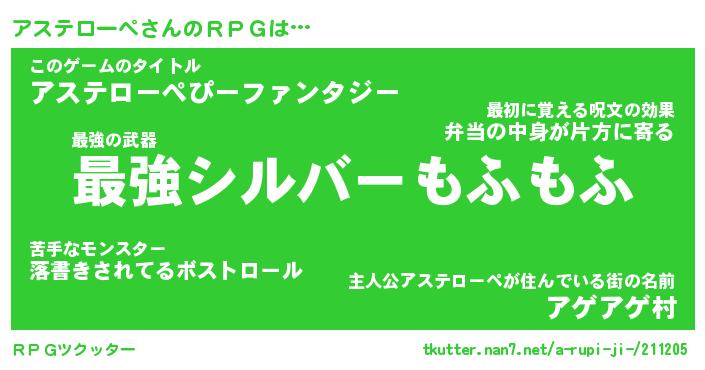 | 料理風あだ名 | 『節約★アステローペと油揚げの玉子丼』 |
