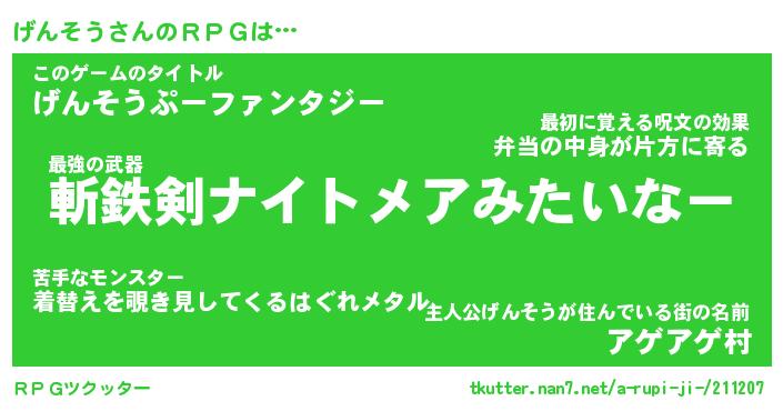 | 男性向けラノベタイトル風あだ名 | 『げんそうの憂鬱』 |
