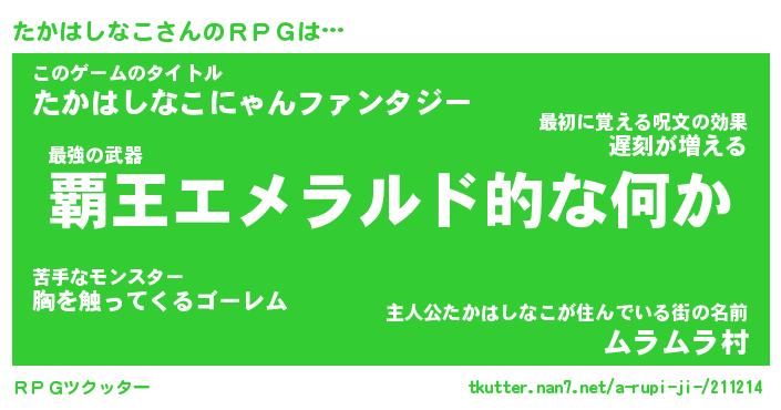 | 男性向けラノベタイトル風あだ名 | 『タカハシナコアートオンライン』 |
