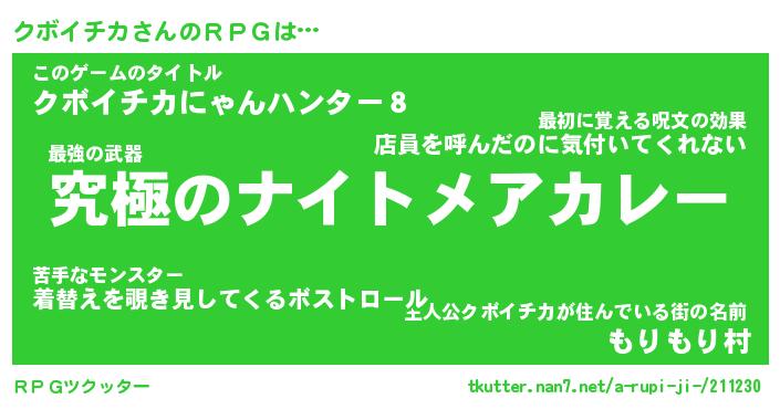 | 料理風あだ名 | 『節約★クボイチカと油揚げの玉子丼』 |