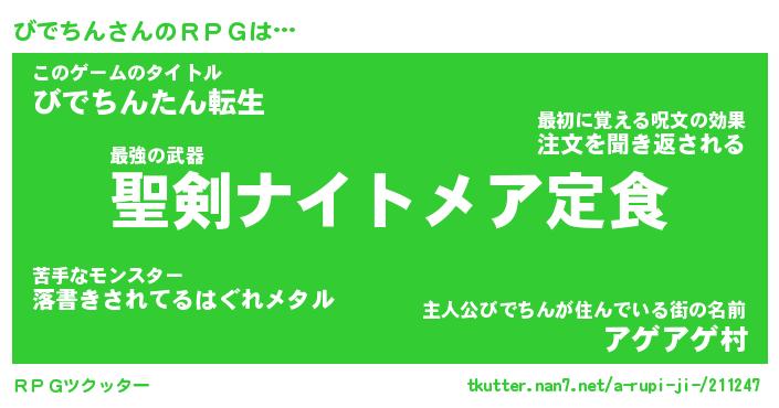 | 男性向けラノベタイトル風あだ名 | 『びでちんの憂鬱』 |