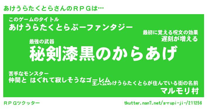 | 男性向けラノベタイトル風あだ名 | 『あけうらたくとらの憂鬱』 |
