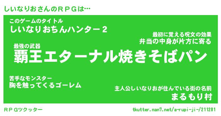 | 伝説のあだ名 | 『封印されし傭兵しいなりお』 |