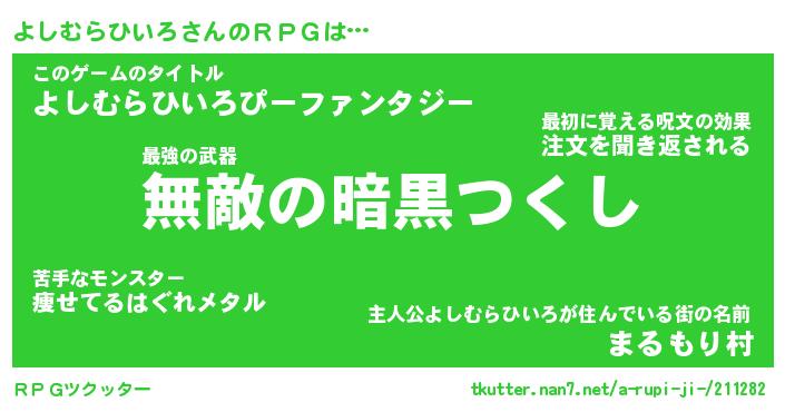 | 男性向けラノベタイトル風あだ名 | 『ヨシムラヒイロアートオンライン』 |