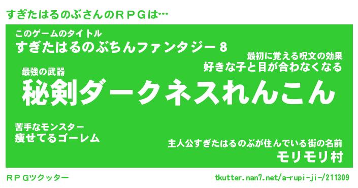 | 男性向けラノベタイトル風あだ名 | 『すぎたはるのぶの憂鬱』 |