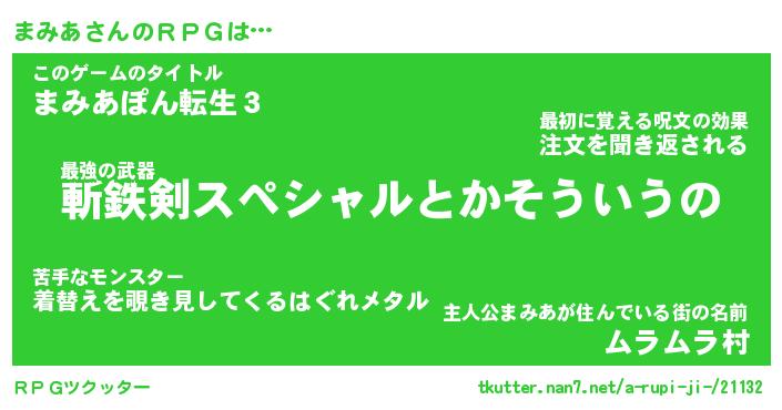 | ファンタジー風あだ名 | 『マミフェル』『エターナルマミアー』 |
