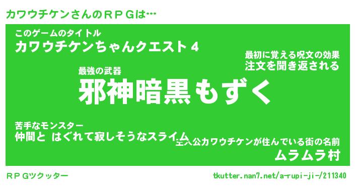 | 男性向けラノベタイトル風あだ名 | 『カワウチケンアートオンライン』 |